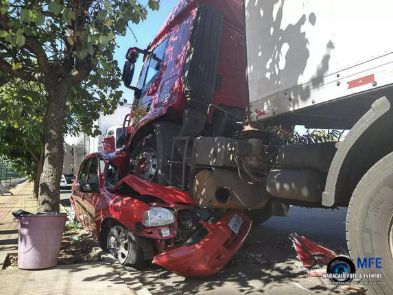 Carreta desgovernada esmagou outro veículo estacionado na Rua Valparaíso, na Vila Jacy. O acidente ocorreu por volta das 8h desta quinta-feira (22) e, apesar da gravidade, ninguém ficou ferido. No momento que o carro foi atingido, não havia ninguém no veículo.