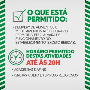 A proibição também se estende aos serviços de alimentação como bares, restaurantes, sorveterias, lanchonetes, cafés, pizzarias, trailers, conveniências, distribuidoras de bebidas e assemelhados, sob pena de o infrator responder ser autuado com multa, além de sanções como suspensão do Alvará de Localização e Funcionamento, com interdição temporária do estabelecimento até o retorno a Bandeira Verde na cidade.