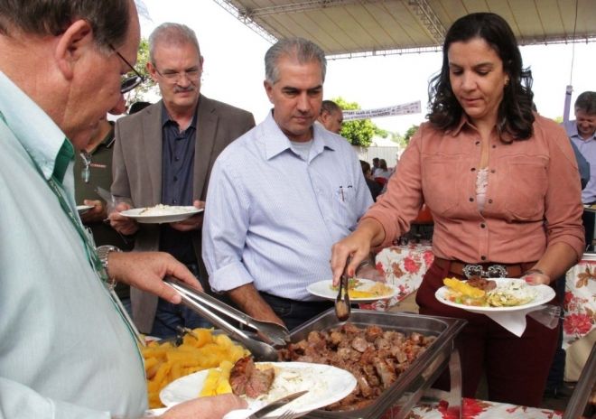 primeira dama Fátima e o Governador Reinaldo Azambuja durante o evento em Maracaju – Foto Chico Ribeiro